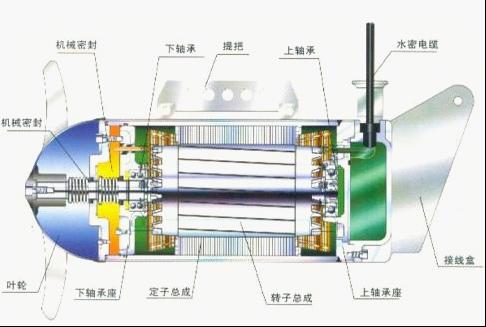 4.潛水攪拌機電機繞組為F級絕緣,防護等級為IP68,選用一次潤滑免維護進口軸承,具有油室泄漏檢測和電機繞組過熱保 護功能,使電機的工作更加安全可靠。